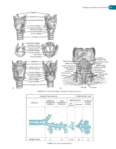FIGURE 13.2 Larynx. (A) Cartilages and ligaments; (B) Neck muscles.