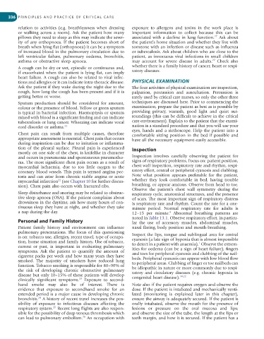 tuberculosis or lung cancer. Wheezing can indicate vocal care environment). Explain to the patient that the exami-