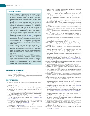 FURTHER READING 27. Rose L, Goldsworthy S, O’Brien-Pallas L et al. Critical care nursing education