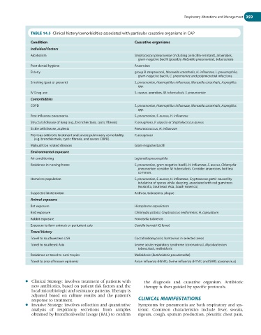 TABLE 14.5 Clinical history/comorbidities associated with particular causative organisms in CAP