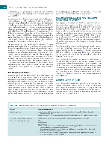 TABLE 14.7 Recommendations for personal protective measures in respiratory pandemics