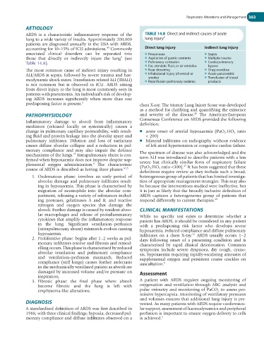 ARDS is a characteristic inflammatory response of the TABLE 14.8 Direct and indirect causes of acute