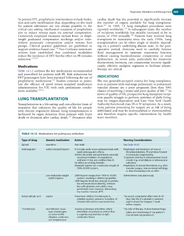 TABLE 14.12 Medications for pulmonary embolism
