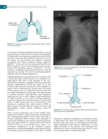 trauma while providing adequate ventilation. 142 In SLTx FIGURE 14.5 Chest X-ray of patient with left single lung transplant for