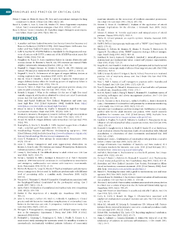 17. Lavery G, McCloskey B. The difficult airway in adult critical care. Crit Care 43. Mallick A, Bodenham A. Tracheostomy in critically ill patients. Eur J Anaes-