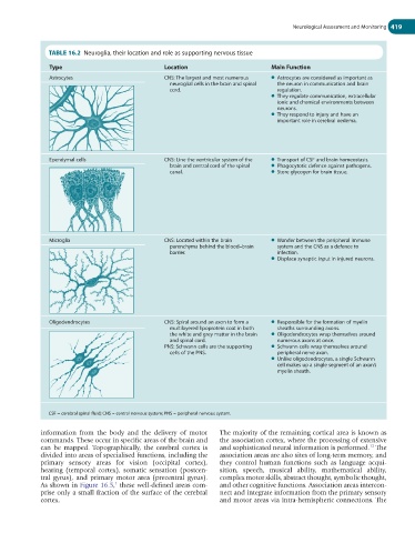 TABLE 16.2 Neuroglia, their location and role as supporting nervous tissue