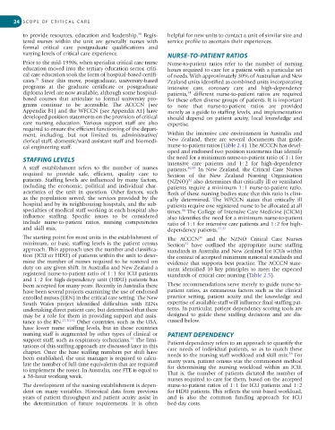 registered nurse-to-patient ratio of 1 : 1 for ICU patients standards of critical care nursing (Table 2.5).