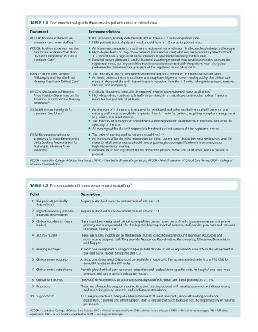TABLE 2.4 Documents that guide the nurse-to-patient ratios in critical care