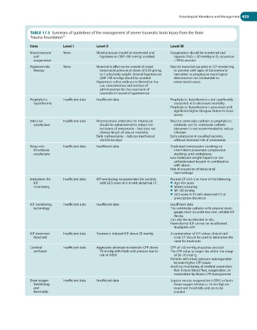 TABLE 17.3 Summary of guidelines of the management of severe traumatic brain injury from the Brain