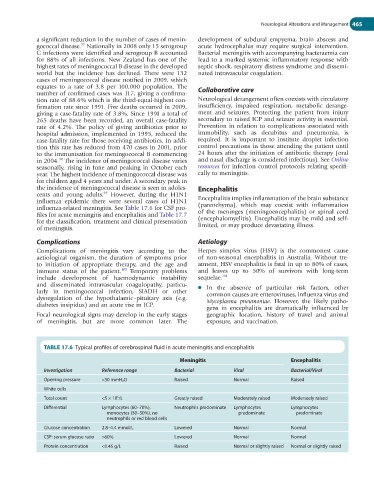 influenza-related meningitis. See Table 17.6 for CSF pro- (parenchyma), which may coexist with inflammation