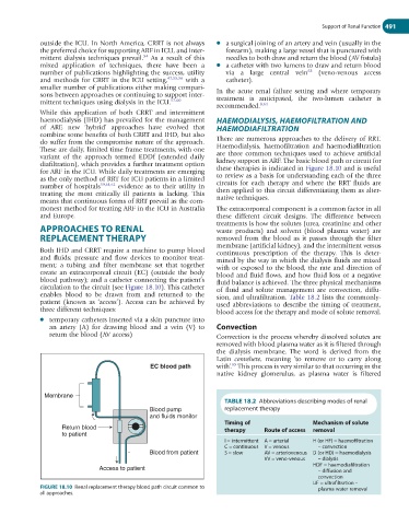 enables blood to be drawn from and returned to the sion, and ultrafiltration. Table 18.2 lists the commonly-