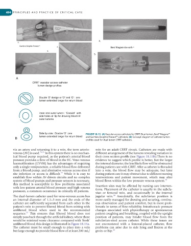 Side by side : Double ‘O’ :one FIGURE 18.15 (A) Vascular access catheters for CRRT. Dual-lumen, Bard® Niagara™