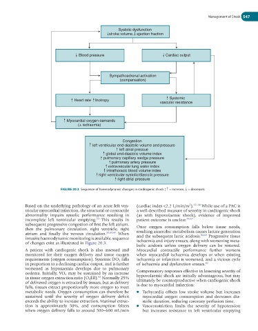FIGURE 20.3 Sequence of haemodynamic changes in cardiogenic shock ( ↑ = increase, ↓ = decrease).