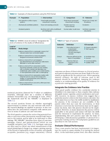 TABLE 3.2 NHMRC’s level of evidence designation for TABLE 3.3 Types of outcome