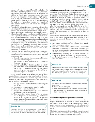 patient will often be nursed flat, with the bed on tilt Collaborative practice: traumatic amputations