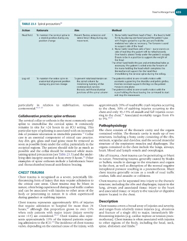 taining spinal precautions (see Table 23.5) and the under- Like all trauma, chest trauma can be penetrating or blunt