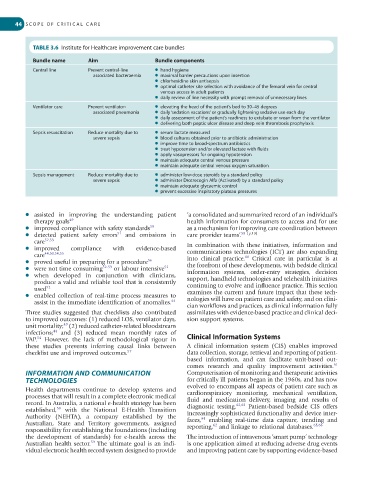 TABLE 3.6 Institute for Healthcare improvement care bundles