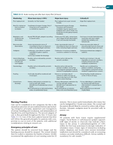 TABLE 23.12 Acute nursing care after burn injury (first 24 hours)