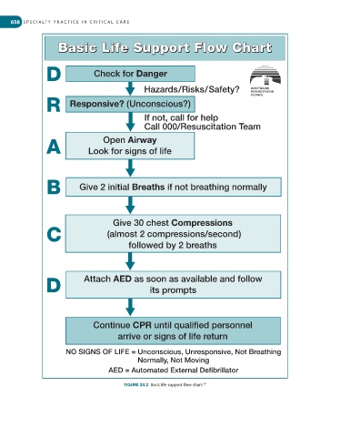 658 S P E C I A LT Y P R A C T I C E I N C R I T I C A L C A R E 39 FIGURE 24.2 Basic life support flow chart.