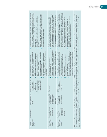 Method / Critique ● ● bundle, 7 months apart) ● ● Methods not detailed ● in outcomes ● ● No outcome measures ● ● ● ● ● No randomisation ● analysis not described ● Abbreviations: ICU = intensive care unit; HDU = high dependency unit; QI = quality improvement; CQI = continuous quality improvement; no. = number; b/w = between; yr = year; pts = patients; grp = group; hosp = hospital; sig = significant; mx = management; mech