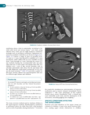 from the 2010 Australian and New Zealand Resuscitation FIGURE 25.4 Range of ETT sizes. (Courtesy Paul de Sensi.)