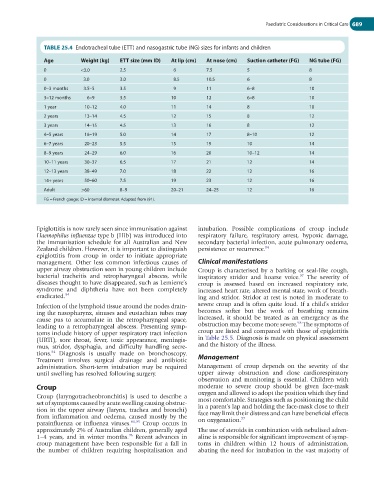 TABLE 25.4 Endotracheal tube (ETT) and nasogastric tube (NG) sizes for infants and children