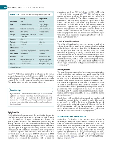 TABLE 25.5 Clinical features of croup and epiglottitis 1998 and 2008, respectively. 101,102 Hib infection can
