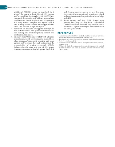 776 A P P E N D I X B A U S T R A L I A N C O L L E G E O F C R I T I C A L C A R E N U R S E S ( A C C C N ) P O S I T I O N S TAT E M E N T S