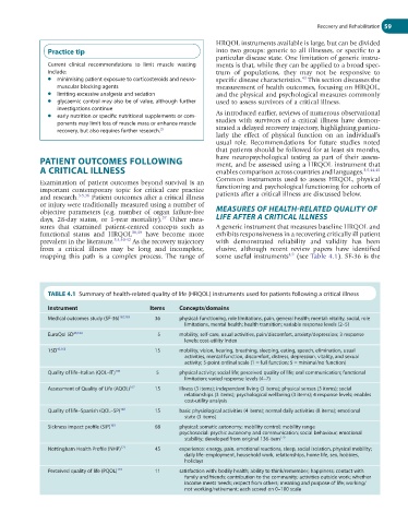 TABLE 4.1 Summary of health-related quality of life (HRQOL) instruments used for patients following a critical illness