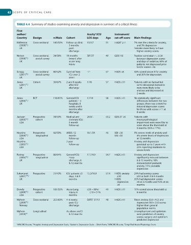 TABLE 4.4 Summary of studies examining anxiety and depression in survivors of a critical illness