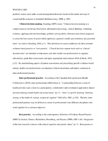wound and the response to treatment (Krishnaswamy, 2008, p. 489).