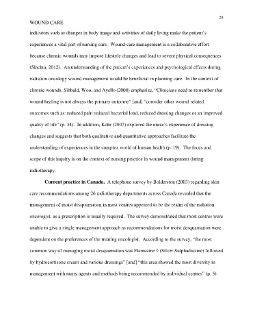 quality of life” (p. 34). In addition, Kohr (2007) explored the nurse’s experience of dressing