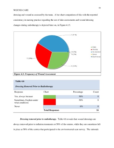 Dressing removal prior to radiotherapy. Table 4.6 reveals that wound dressings are