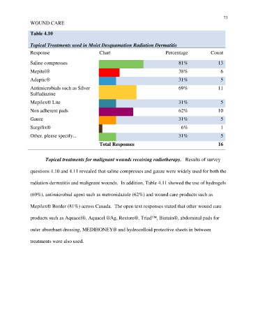 radiation dermatitis and malignant wounds. In addition, Table 4.11 showed the use of hydrogels