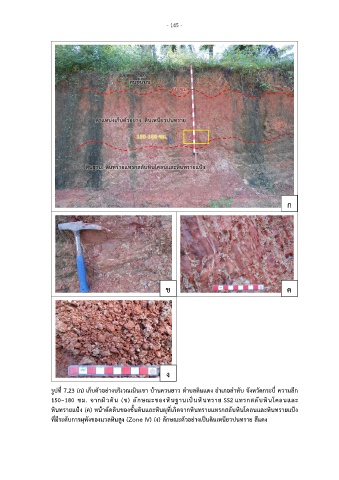 150–180 ซม. จากผิวดิน (ข) ลักษณะของหินฐานเปนหินทราย SS2 แทรกสลับหินโคลนและ