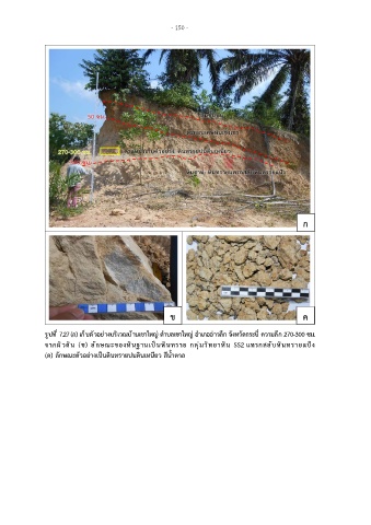จากผิวดิน (ข) ลักษณะของหินฐานเปนหินทราย กลุมวิทยาหิน SS2 แทรกสลับหินทรายแปง