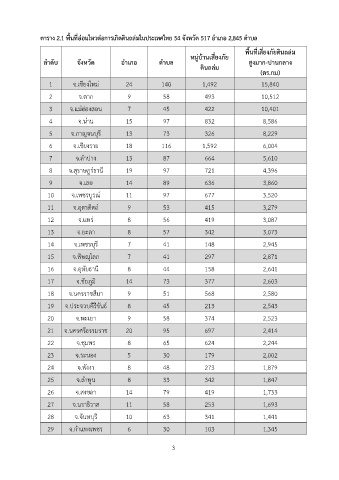 ตาราง 2.1 พื้นที่อ่อนไหวต่อการเกิดดินถล่มในประเทศไทย 54 จังหวัด 517 อำเภอ 2,845 ตำบล