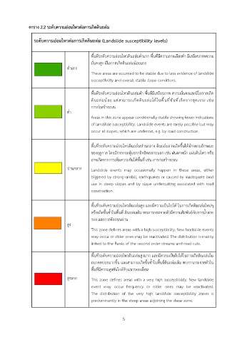 ตาราง 2.2 ระดับความอ่อนไหวต่อการเกิดดินถล่ม