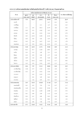 ตาราง 3.3 ระดับความอ่อนไหวต่อการเกิดดินถล่มจังหวัดกระบี่ 5 ระดับ (ตร.กม.) จำแนกตามตำบล