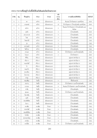 ตาราง 17.4 รายชื่อหมู่บ้านในพื้นที่เสี่ยงภัยดินถล่มจังหวัดนครนายก