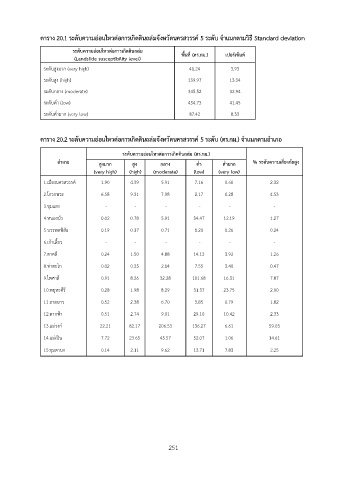ตาราง 20.1 ระดับความอ่อนไหวต่อการเกิดดินถล่มจังหวัดนครสวรรค์ 5 ระดับ จำแนกตามวิธี Standard deviation