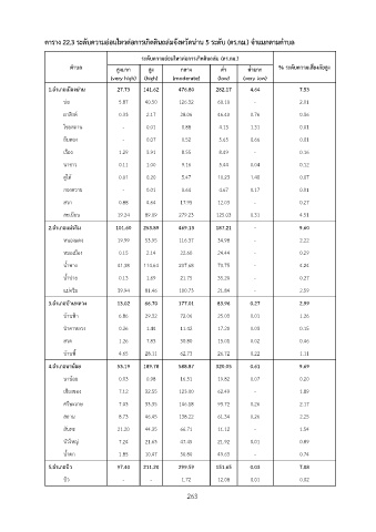 ตาราง 22.3 ระดับความอ่อนไหวต่อการเกิดดินถล่มจังหวัดน่าน 5 ระดับ (ตร.กม.) จำแนกตามตำบล
