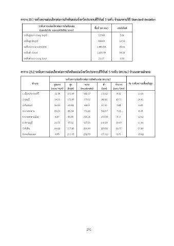 ตาราง 23.1 ระดับความออนไหวต่อการเกิดดินถล่มจังหวัดประจวบคีรีขันธ์ 5 ระดับ จำแนกตามวิธี Standard deviation