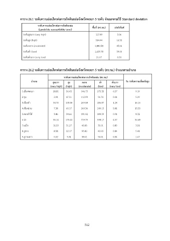 ตาราง 26.1 ระดับความอ่อนไหวต่อการเกิดดินถล่มจังหวัดพะเยา 5 ระดับ จำแนกตามวิธี Standard deviation