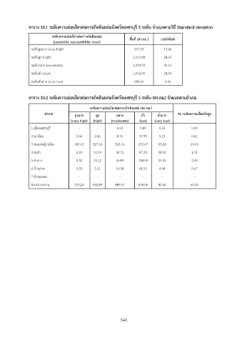 ตาราง 30.1 ระดับความอ่อนไหวต่อการเกิดดินถล่มจังหวัดเพชรบุรี 5 ระดับ จำแนกตามวิธี Standard deviation
