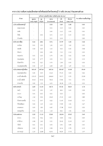 ตาราง 30.3 ระดับความอ่อนไหวต่อการเกิดดินถล่มจังหวัดเพชรบุรี 5 ระดับ (ตร.กม.) จำแนกตามตำบล