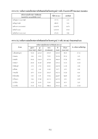 ตาราง 31.1 ระดับความอ่อนไหวต่อการเกิดดินถล่มจังหวัดเพชรบูรณ์ 5 ระดับ จำแนกตามวิธี Standard deviation