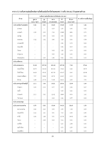 ตาราง 5.3 ระดับความอ่อนไหวต่อการเกิดดินถล่มจังหวัดกำแพงเพชร 5 ระดับ (ตร.กม.) จำแนกตามตำบล