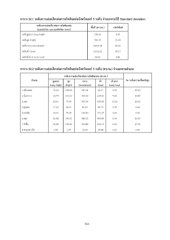 ตาราง 32.1 ระดับความอ่อนไหวต่อการเกิดดินถล่มจังหวัดแพร่ 5 ระดับ จำแนกตามวิธี Standard deviation