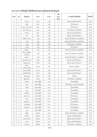 ตาราง 33.4 รายชื่อหมู้บ้านพื้นที่อ่อนไหวต่อการเกิดดินถล่ม จังหวัดภูเก็ต